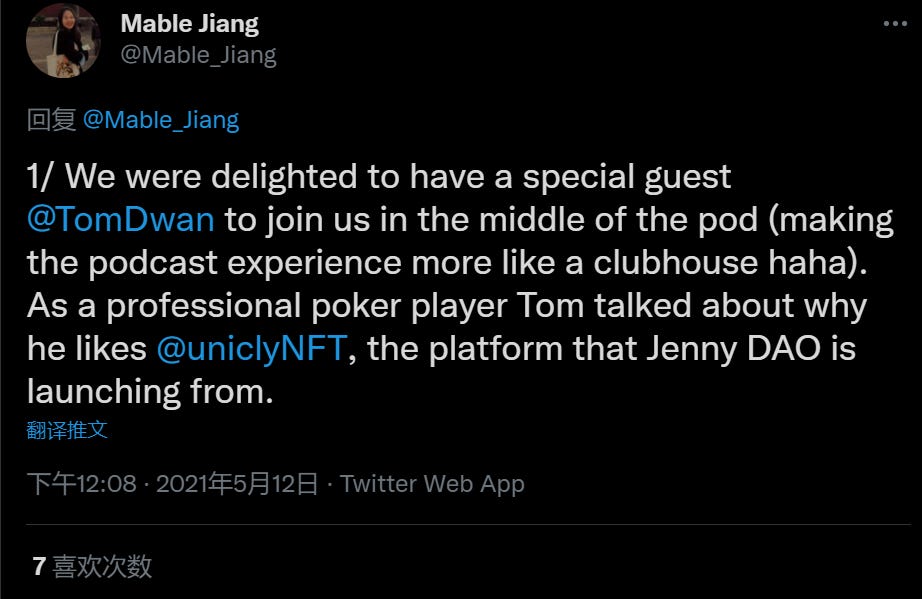 Mable与TomDwan互动 原文链接